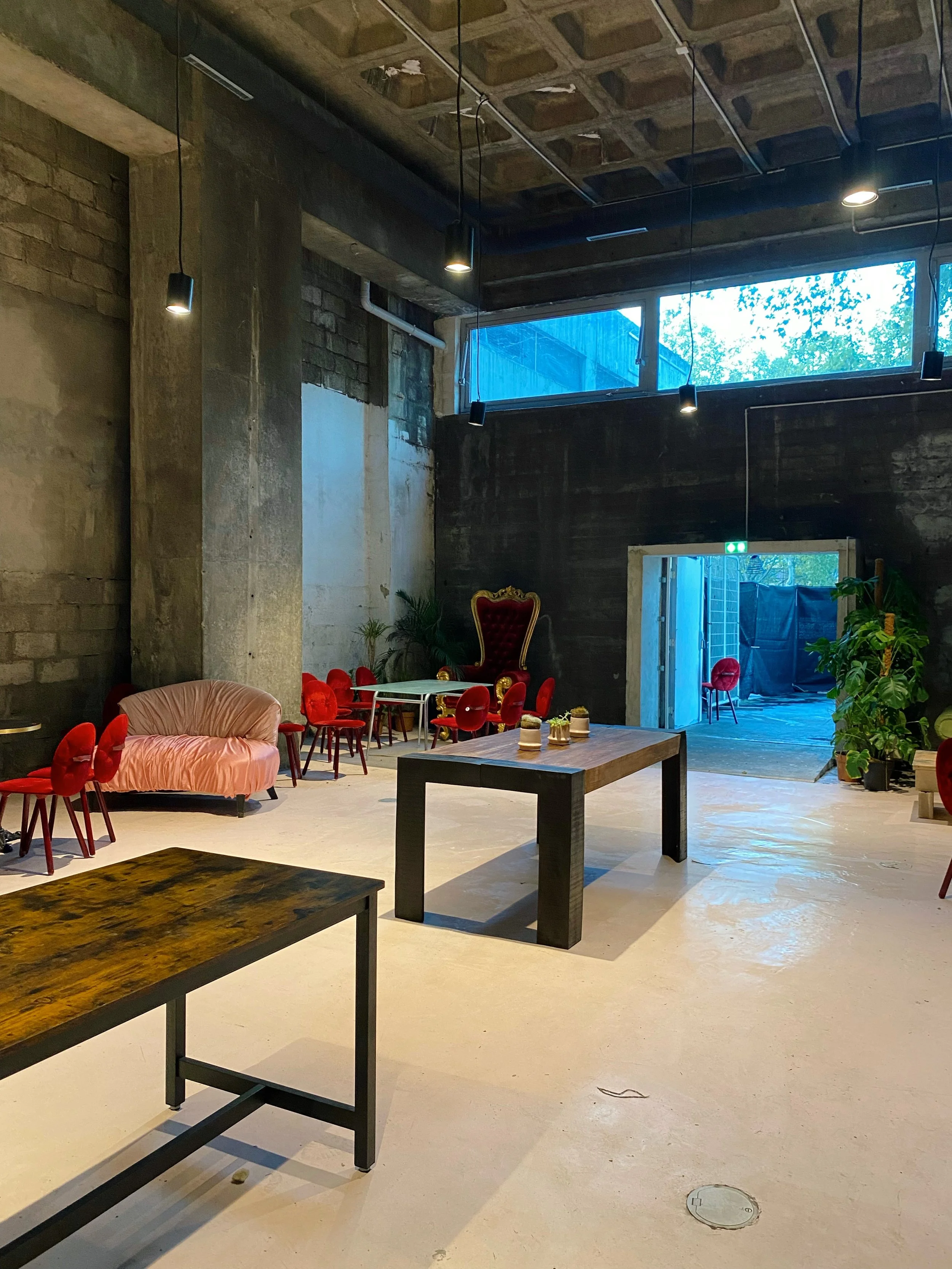 L'équipe de FAWA m'a sollicitée pour les assister dans le processus de dépôt de Permis de construire pour la transformation et la mise en conformité d'un entrepôt urbain situé près de la Porte de la Villette, dans l'emprise du Périphérique. Le défi était de convertir cet espace logistique en un Établissement Recevant du Public (ERP), tout en préservant son identité brute et minimaliste. Nous avons choisi de conserver l'aspect existant, tel que le plafond à caissons en béton, tout en réalisant des interventions ciblées pour répondre aux normes techniques et fonctionnelles requises. Aujourd'hui, FAWA est un restaurant solidaire qui met en valeur les invendus alimentaires, accompagné d'une riche programmation événementielle et festive.